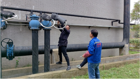 冬季将至,近期,县供水集团广泛开展城乡供水设施防冻保护及宣传工作,确保我县城乡居民在冬季正常用水。针对供水设施设备、应急抢修、防寒物资配备、热线服务、值班值守等工作进行全面部署,重点对去年发生过冻表的老旧小区及裸露在室外的水管、消防栓等用水设施"穿衣”,通过加装保温箱及保温棉,全力做好防范极寒天气供水保障工作。此外,还积极开展防冻宣传工作,通过微信群、明白卡、服务牌以及24小时服务热线等多渠道宣传,提高了群众的供水防冻意识。图为该集团工作人员对裸露的供水管道加装保温棉。