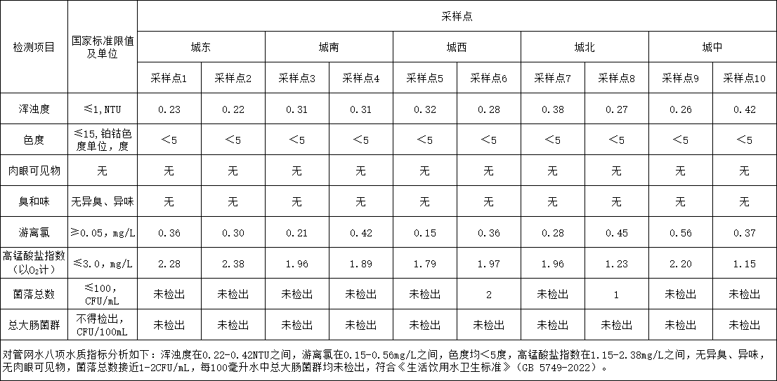 2024年10月份出厂水水质公告
