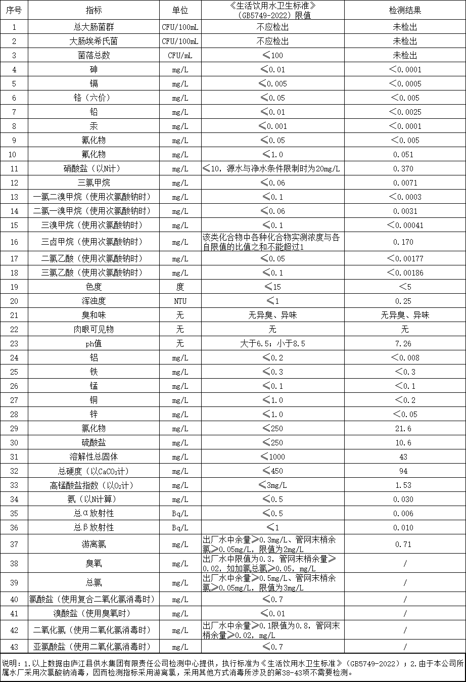2025年2月2日出厂水水质公告