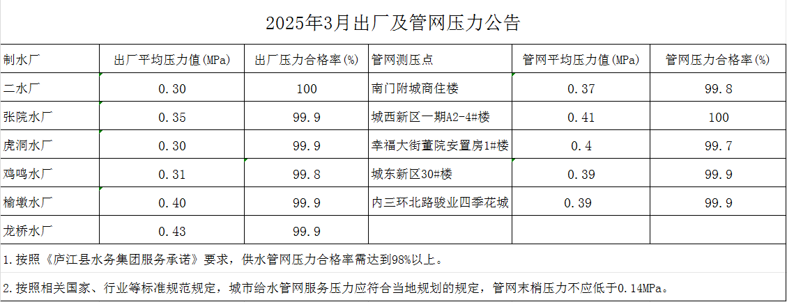 2025年3月30日出厂水水质公告